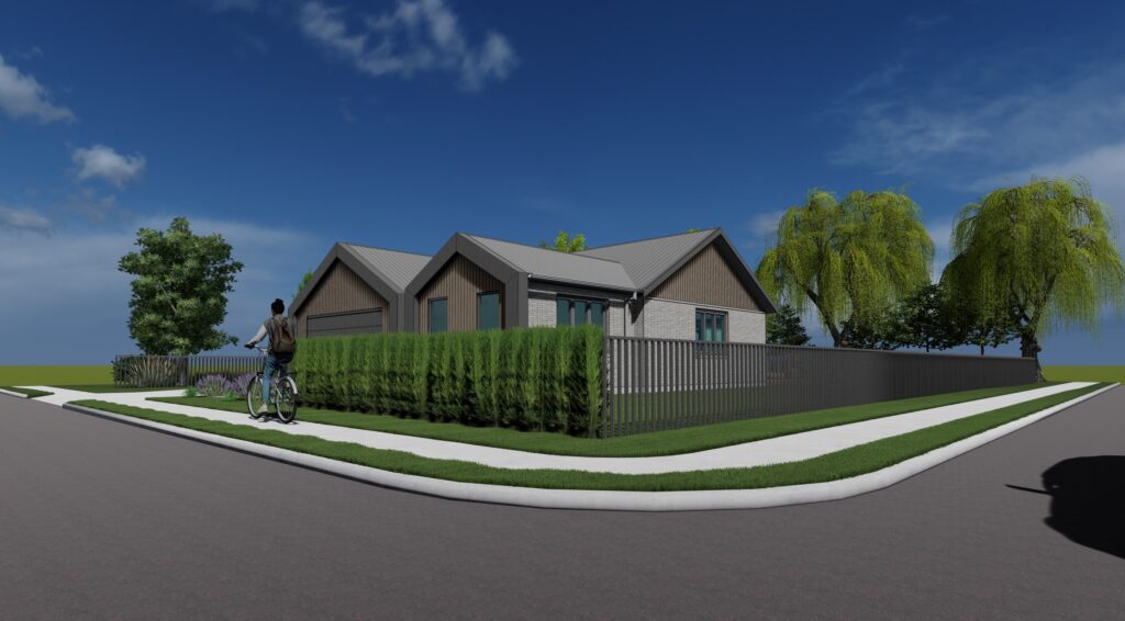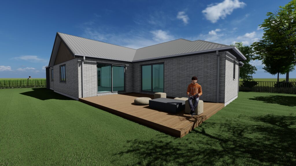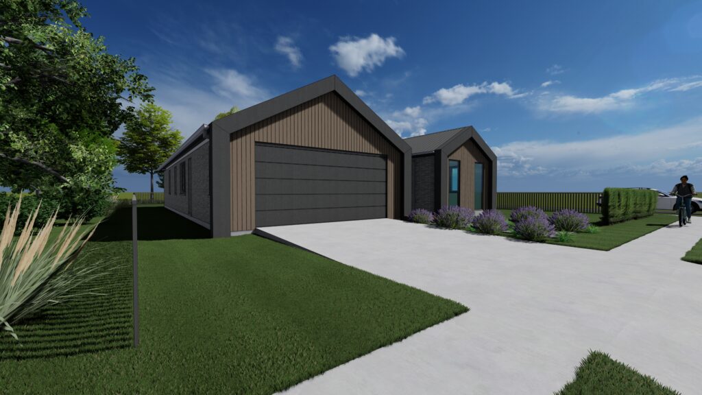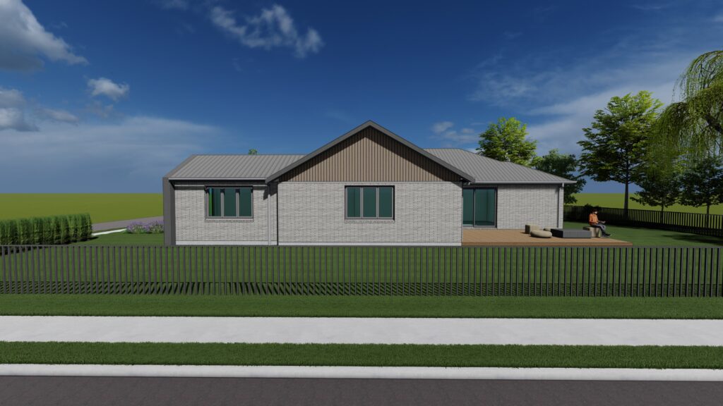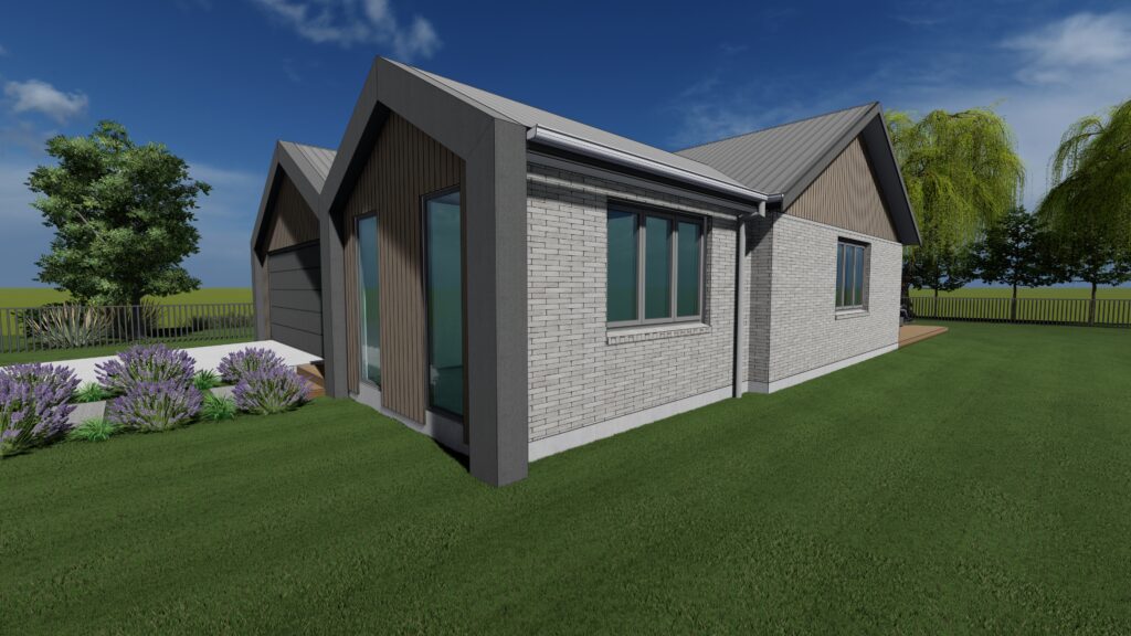 This minimalist timber-framed modern home is situated in the heart of Terry Came Drive in Cambridge. Its design draws inspiration from a mix of two-tone brick and cedar cladding. The exterior boasts gable columns adorned with Colorsteel sheets, adding a striking accent to the house. The residence features outdoor living areas, varying ceiling heights in the living and bedroom spaces, and seamless access to the outdoors from the lounge and dining rooms.